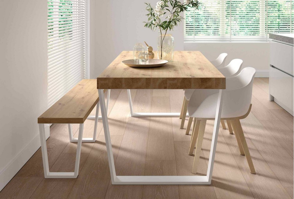 - Mesa comedor rectangular fija de 190 x 90 x 75 cm con patas uve