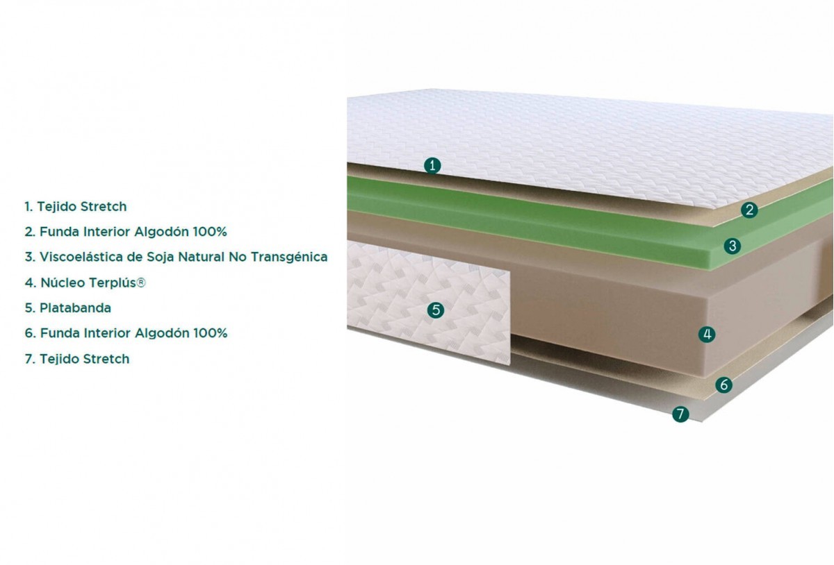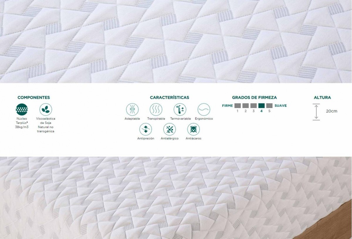 Colchón núcleo Terplús® y viscoelástica de soja natural, Mod. Sensiter