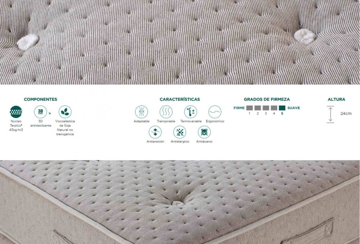 - Núcleo Terplús® (43kg/m3) con 5 zonas de confort de Soja Natural no transgénica perfilado y vaciado.