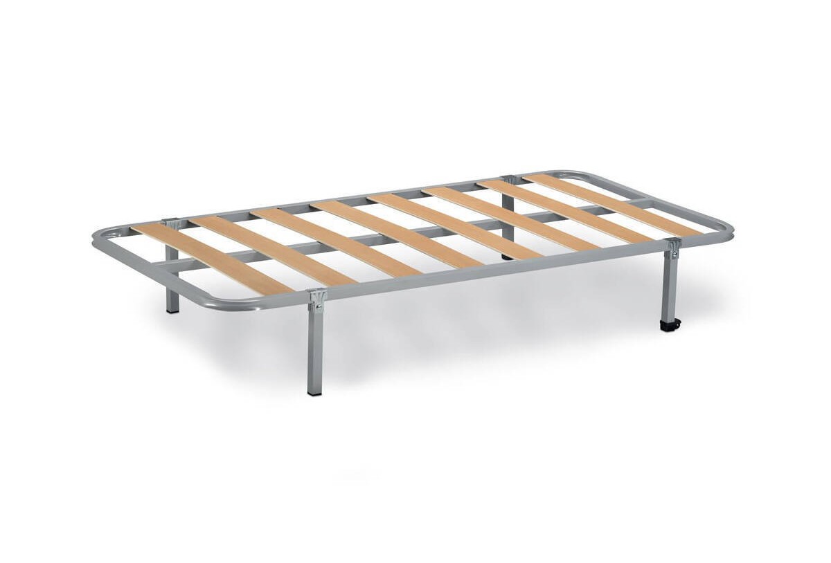 Somier básico de láminas de madera contrachapada de 100 mm de anchura, con bastidor de tubo 30x30 acerado y recubrimiento de pintura epoxi. Pensado para los colchones más sencillos y con menos exigencias. Disponible para colchones de 80 x 190 cm y 90 x 190 cm.