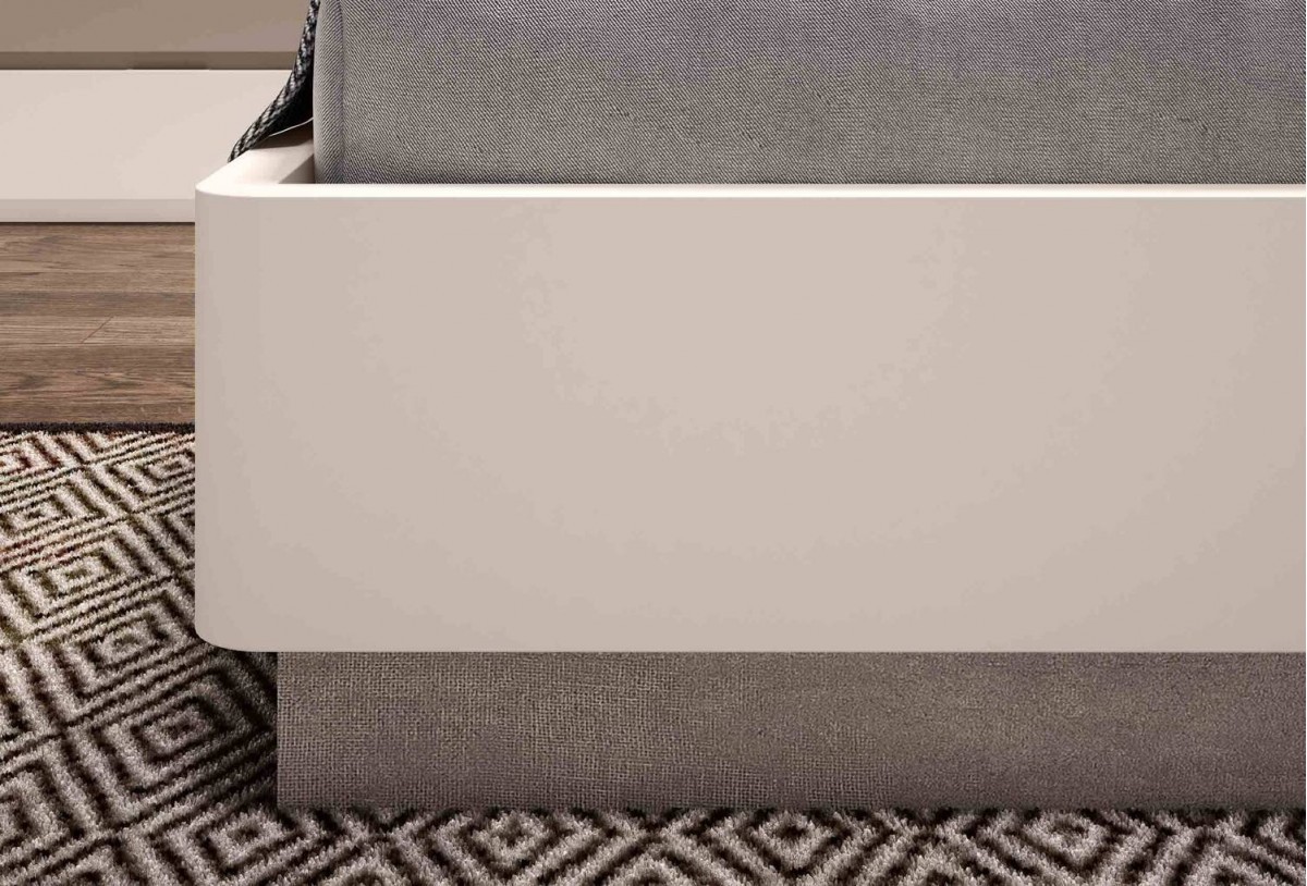 - Bancada redondeada de 159 x 199 x 32 cm con arcón batiente y base tapizada (para somier de 150 x 190 cm)