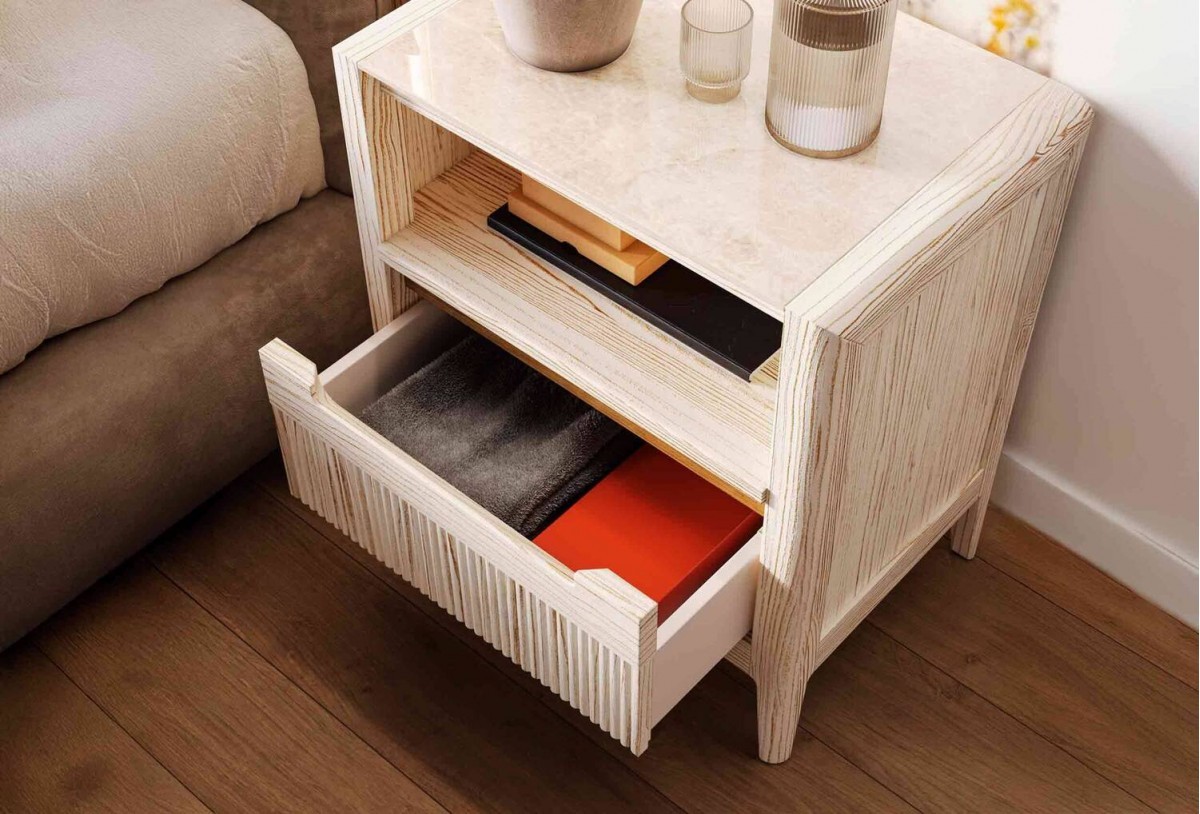 - Mesita de 70 x 37 x 60 cm con 2 cajones (tapa porcelánico no incluida en el precio)