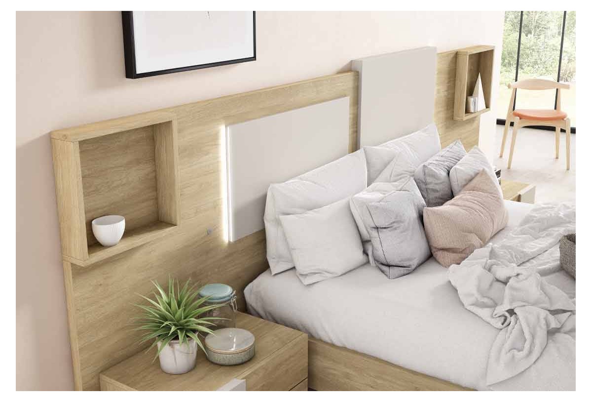 - Cabezal de 285 x 10 x 125 cm (para somier de 150 cm) con luces