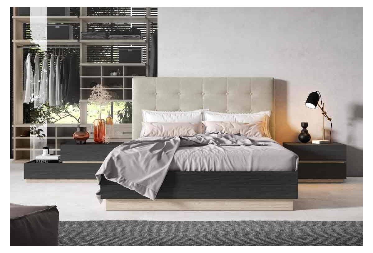 - Bancada cuadrada de 159 x 199 x 32 cm (para somier de 150 x 190 cm) con arcón batiente y base tapizada