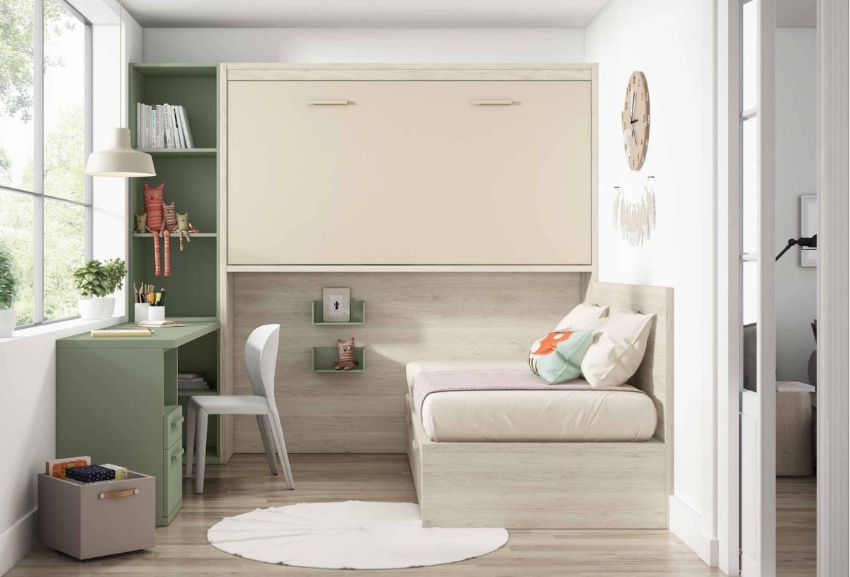 Dormitorio juvenil con cama abatible superior, Mod. Wayzz