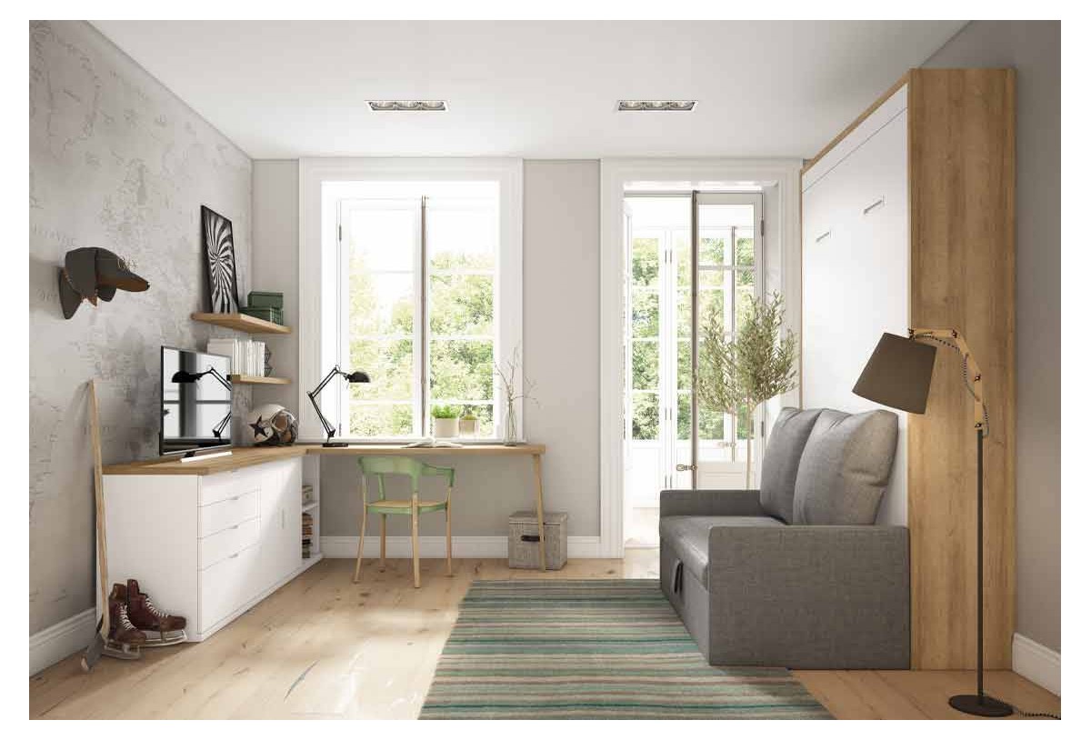 Dormitorio juvenil completo con cama abatible y sofá, Mod. Roger