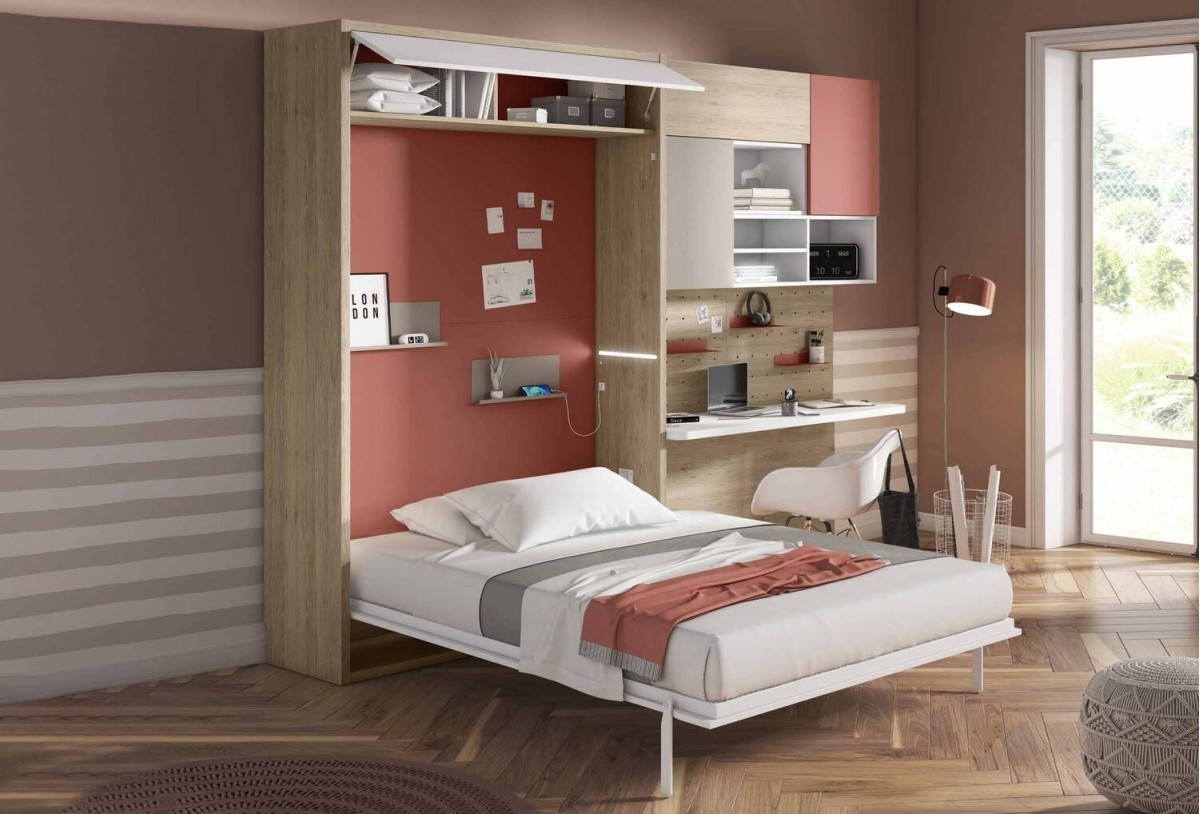 Dormitorio juvenil completo con cama grande abatible, Mod. Juleka