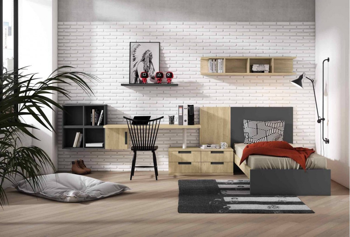 Dormitorio juvenil con cama recta, Mod. Skeebo