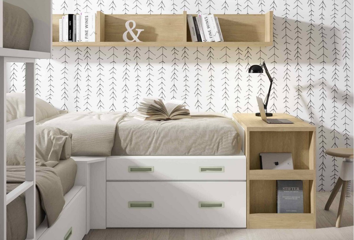 - Módulo block de 202 x 102 x 34 cm (para colchón de 190 x 90 cm) con base y arrastre. Incluye somier de arrastre (mismo largo y ancho).