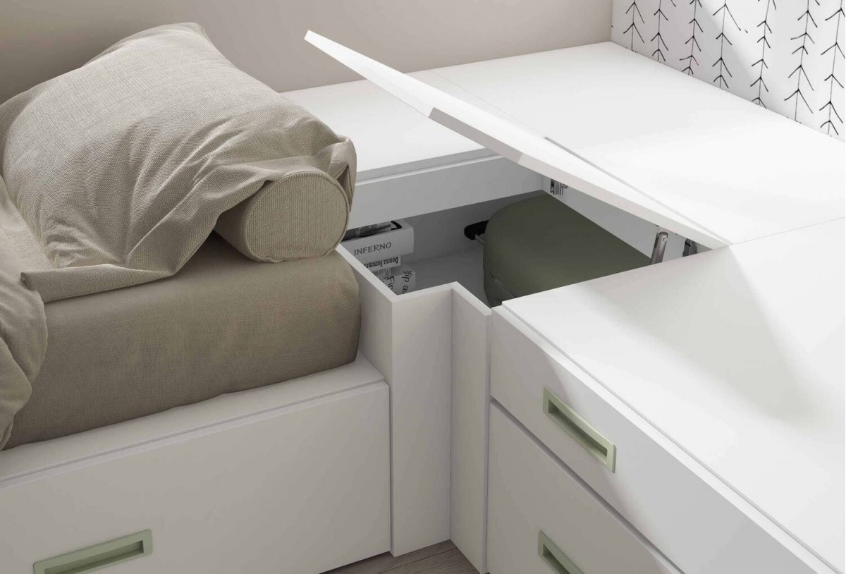 - Arcón encimera extraíble de 50 x 102 x 76 cm (para cama de 90 cm). Abierta ocupa 181 cm.