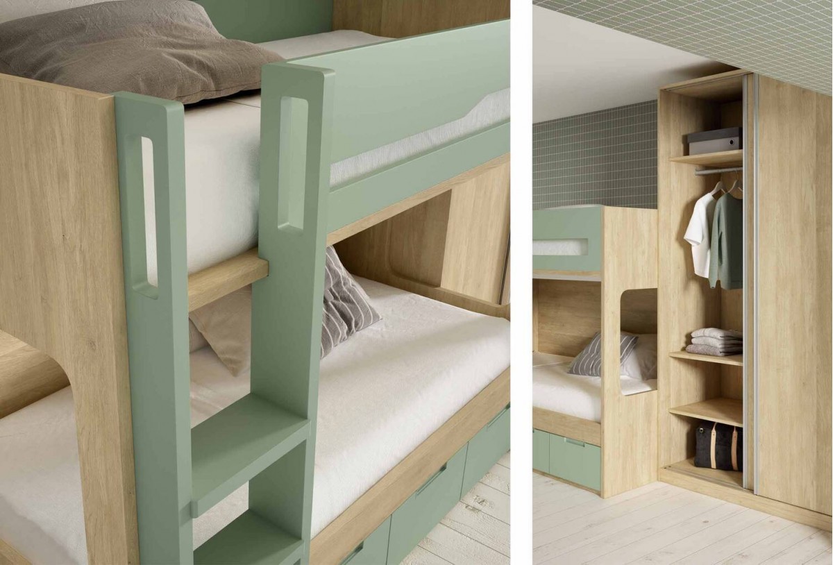 Dormitorio juvenil con litera y armario corredero Mod. Pepita