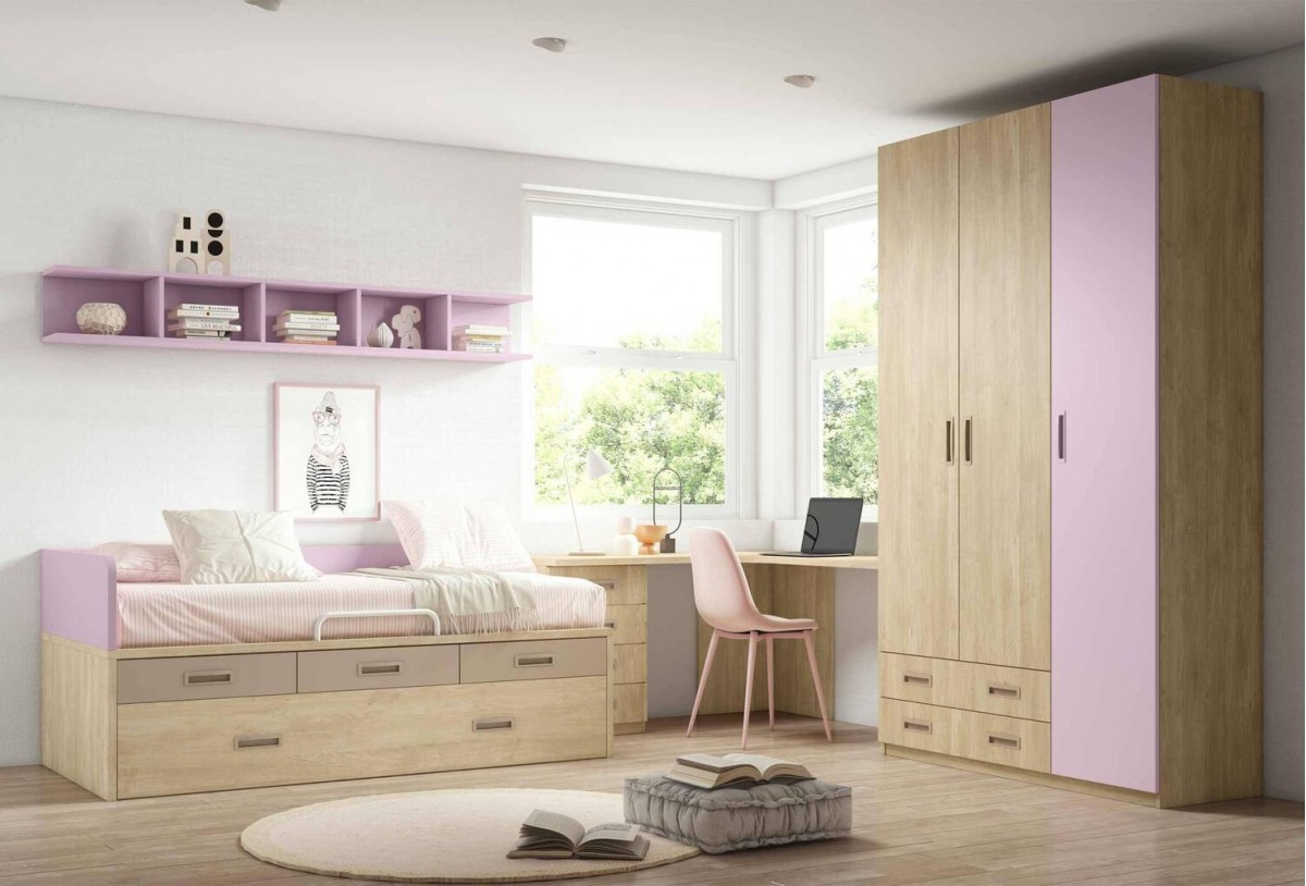 Dormitorio juvenil Mod. LUCA con Armario 3 Puertas y Compacto