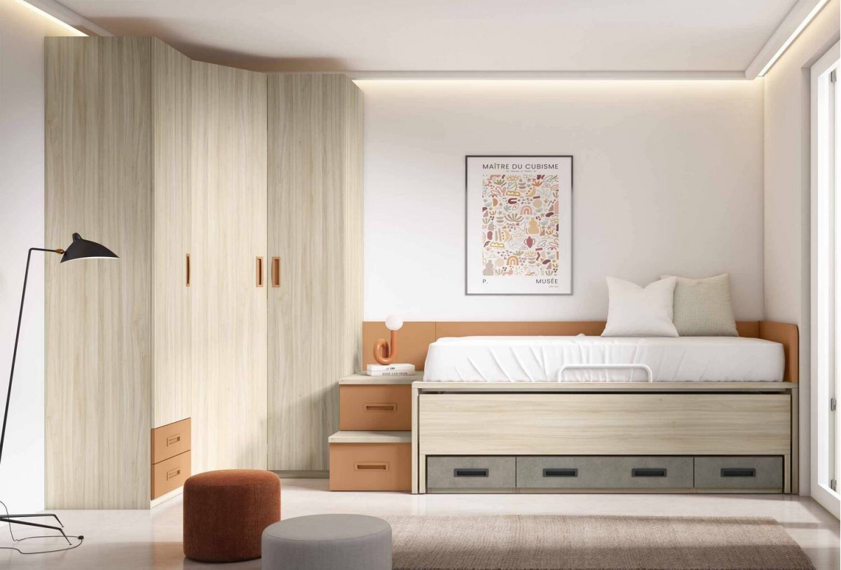 Dormitorio juvenil compacto con escalera, Mod. CLARENCE