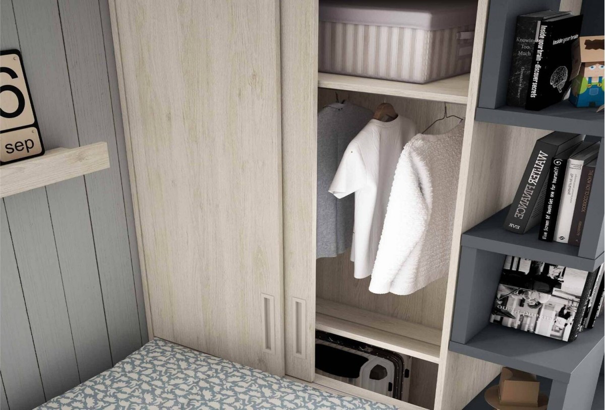 Armario arcón corredero, compacto con arrastre y zona de estudio 200 cm: orden y confort para la habitación juvenil