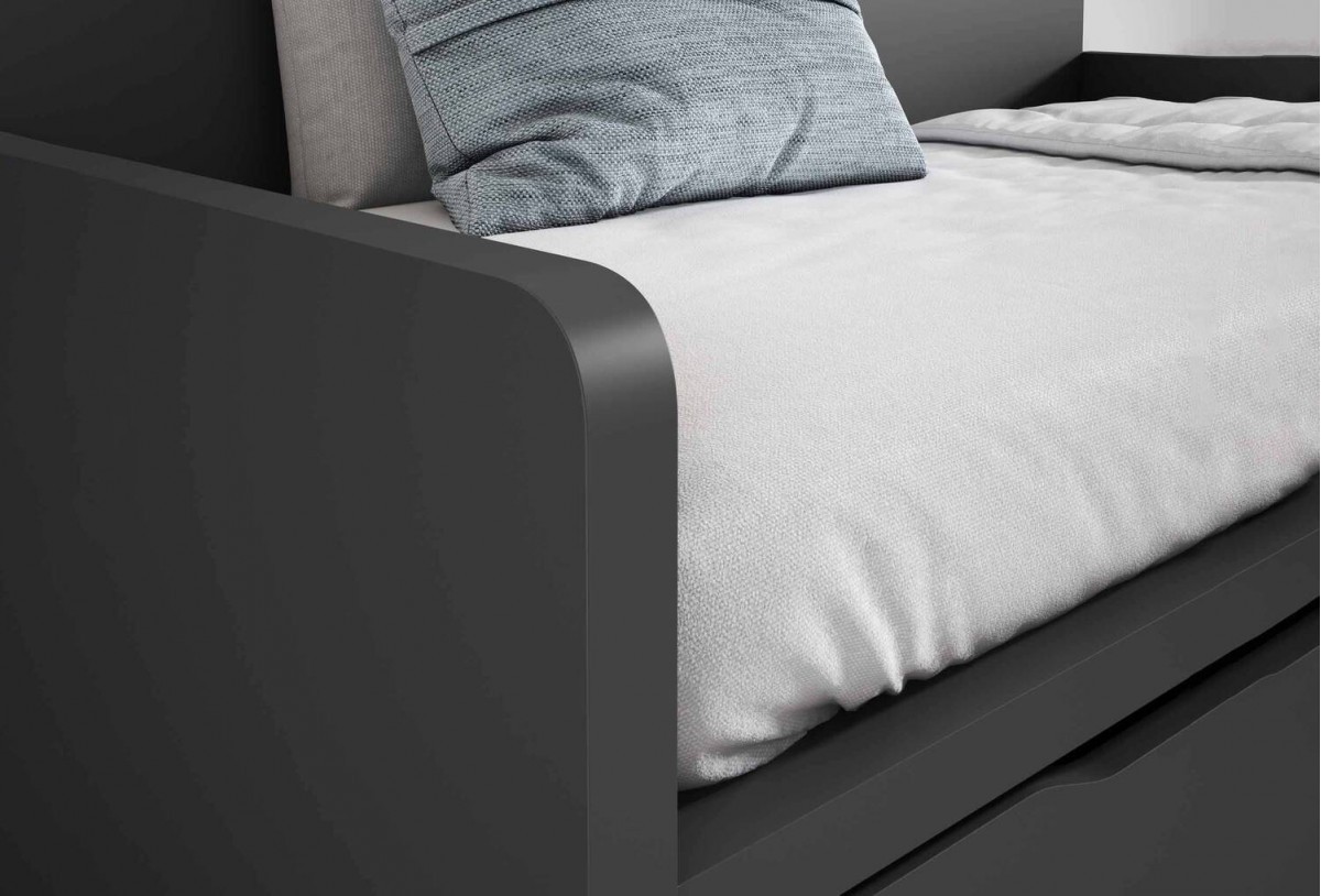 - Compacto de 206 x 102 x 100 cm (para colchón de 190 x 90 cm) con 3 cajones cortos y cama desplazable oculta (mismo largo y ancho). No necesita somier.