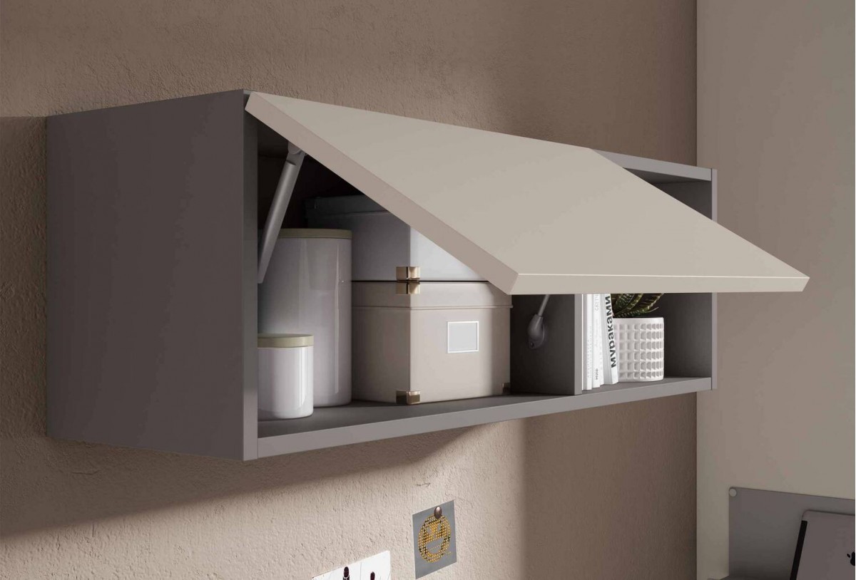 100×32×34 cm con puerta elevable izquierda 60 cm, herraje oculto y sistema anti-vuelco (no incluido): ideal para material de estudio que no quieres a la vista. Estante metálico 45×11×18 opcional para apoyo extra.