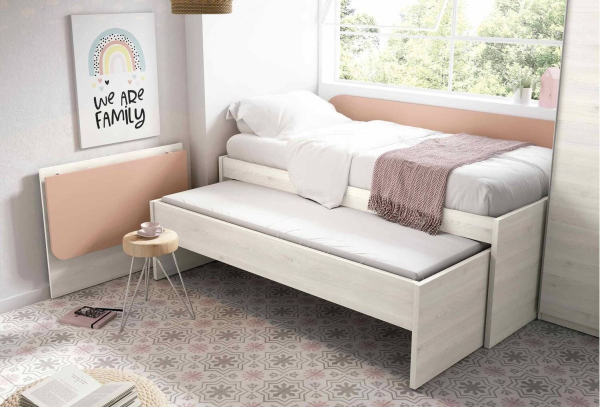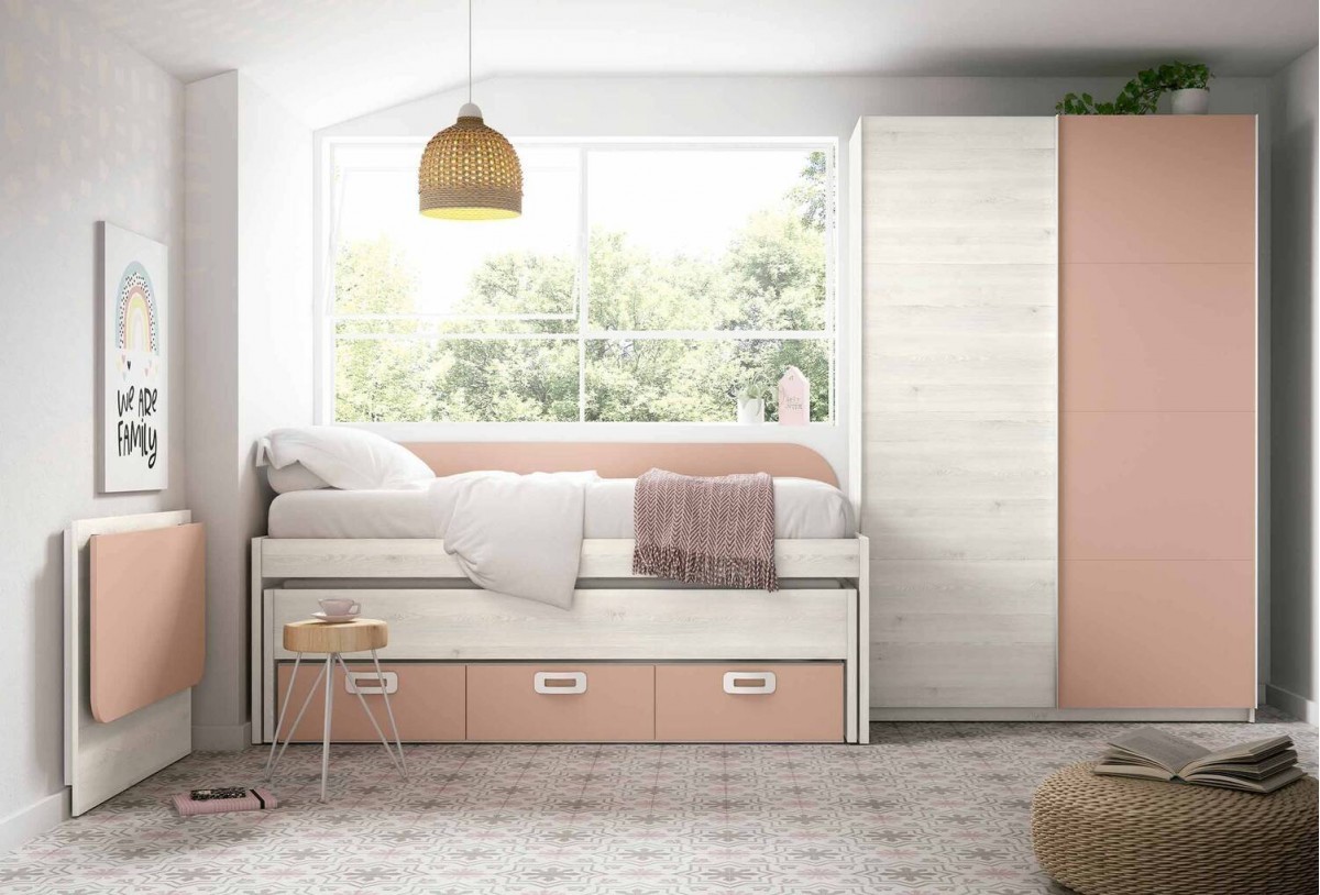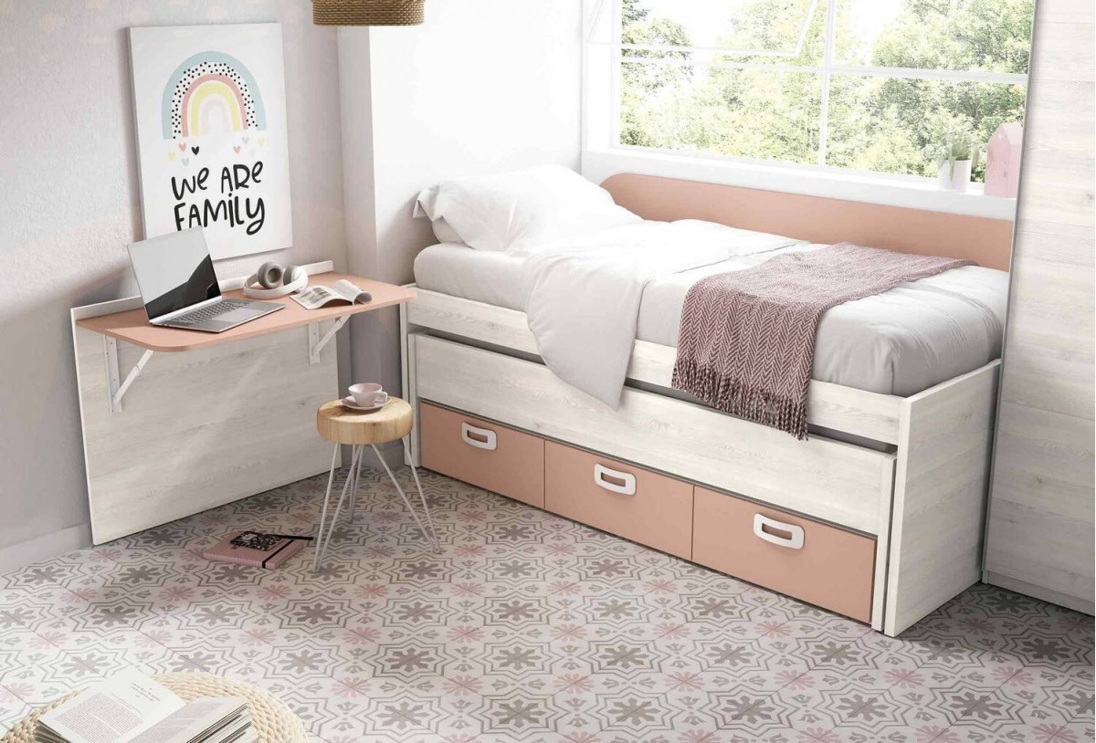 | Compacto con cama desplazable | 202x99,5x67,8 cm | Para 190x90. Segunda cama oculta + 3 cajones gran capacidad. |