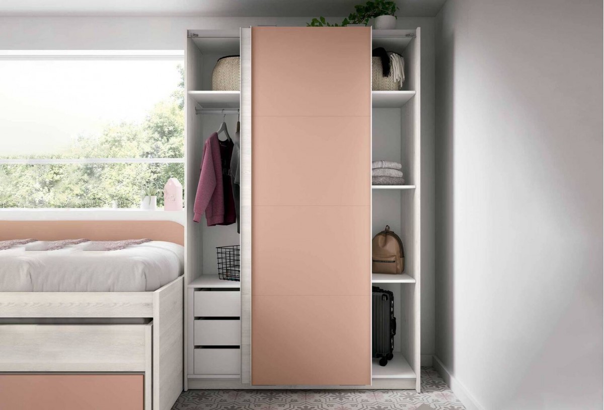 En SALLY hemos priorizado muebles que resuelven necesidades habituales sin “invadir”: las correderas evitan el radio de apertura de las batientes, perfecto para cuartos estrechos o con cama cercana. El compacto aporta una segunda cama desplazable para visitas y tres grandes cajones contenedores que descargan el armario. El respaldo protege la pared, sirve de apoyo cómodo y personaliza la línea de cabecero. La mesa plegable se abre en un gesto, con fondo de trabajo real, y al cerrar, libera la zona de juego o entrenamiento. Para interior del armario, la cajonera opcional ordena ropa interior y accesorios sin perder el hueco superior.
