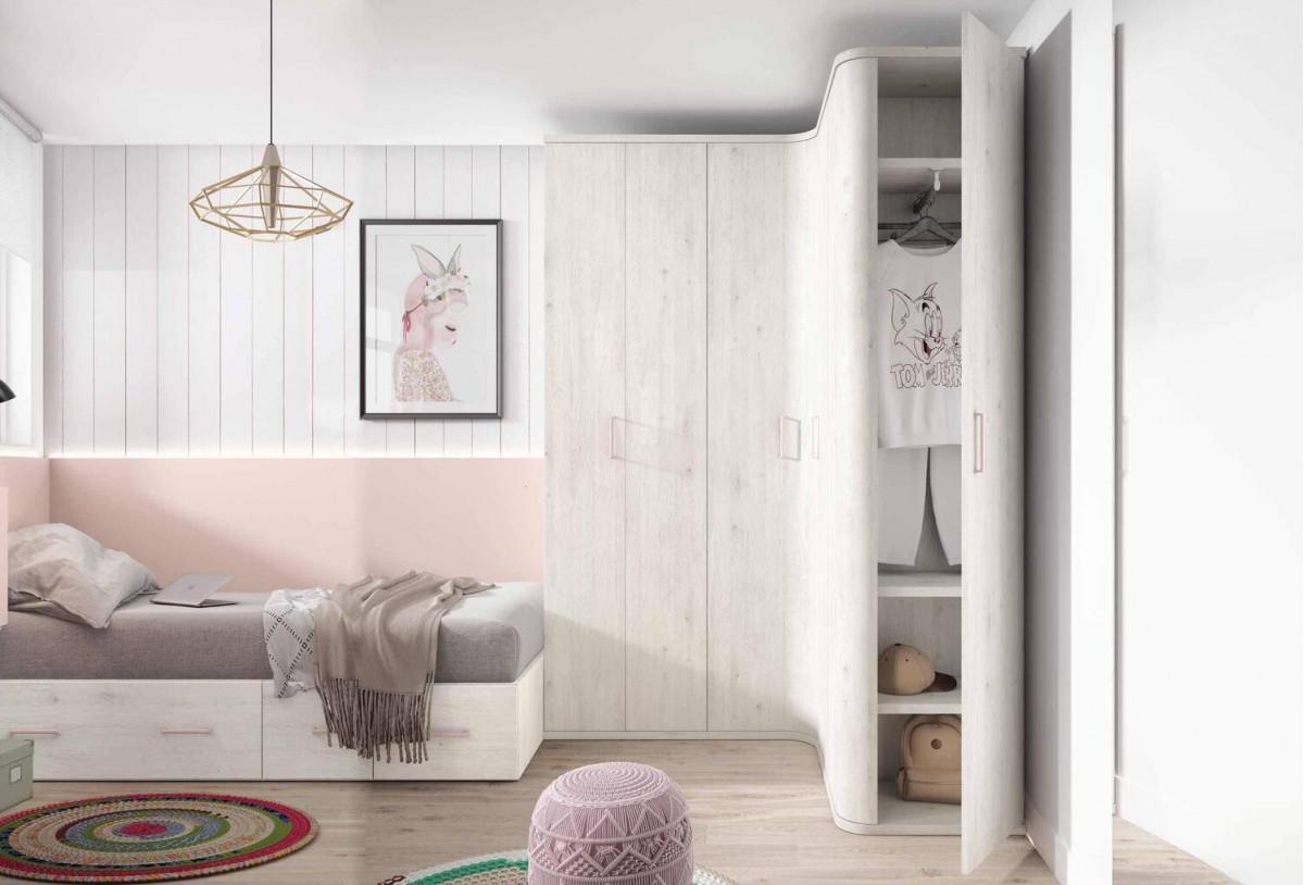 Dormitorio juvenil con armario rincón, Mod. Miranda