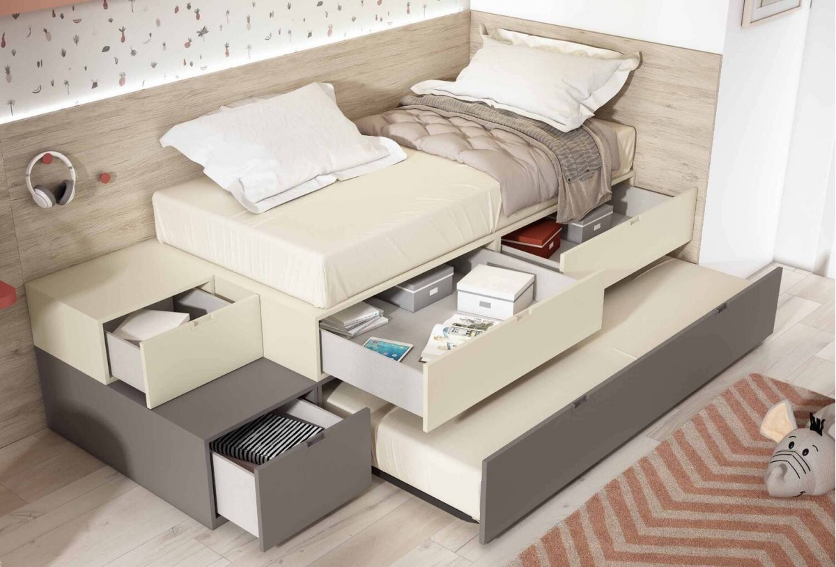 Cama con arrastre y almacenaje integrado