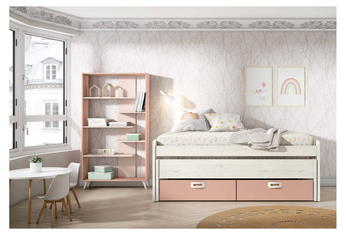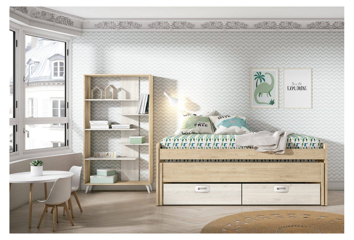 Dormitorio juvenil con estantería, Mod. Edna