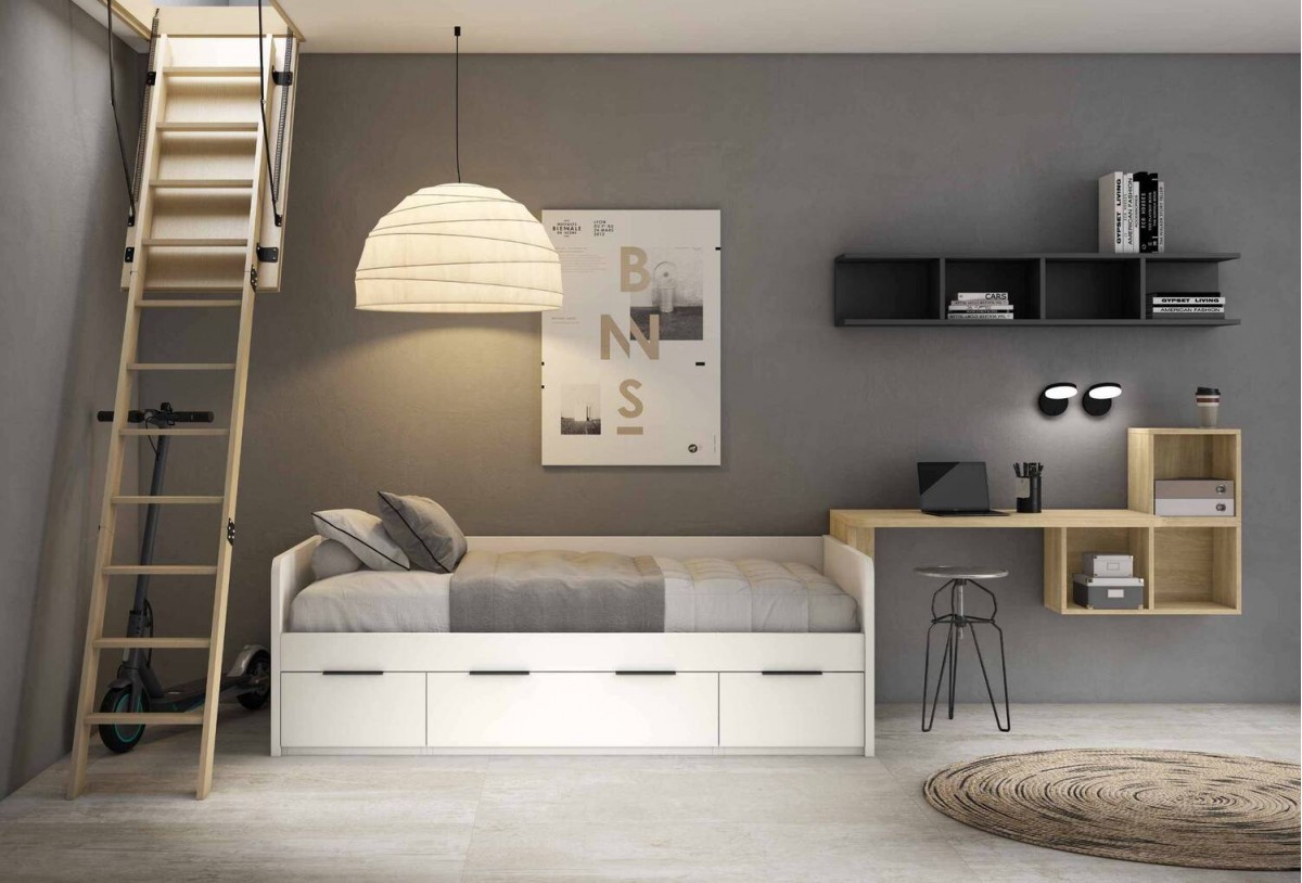 Dormitorio juvenil escritorio colgado Mod. Tambry