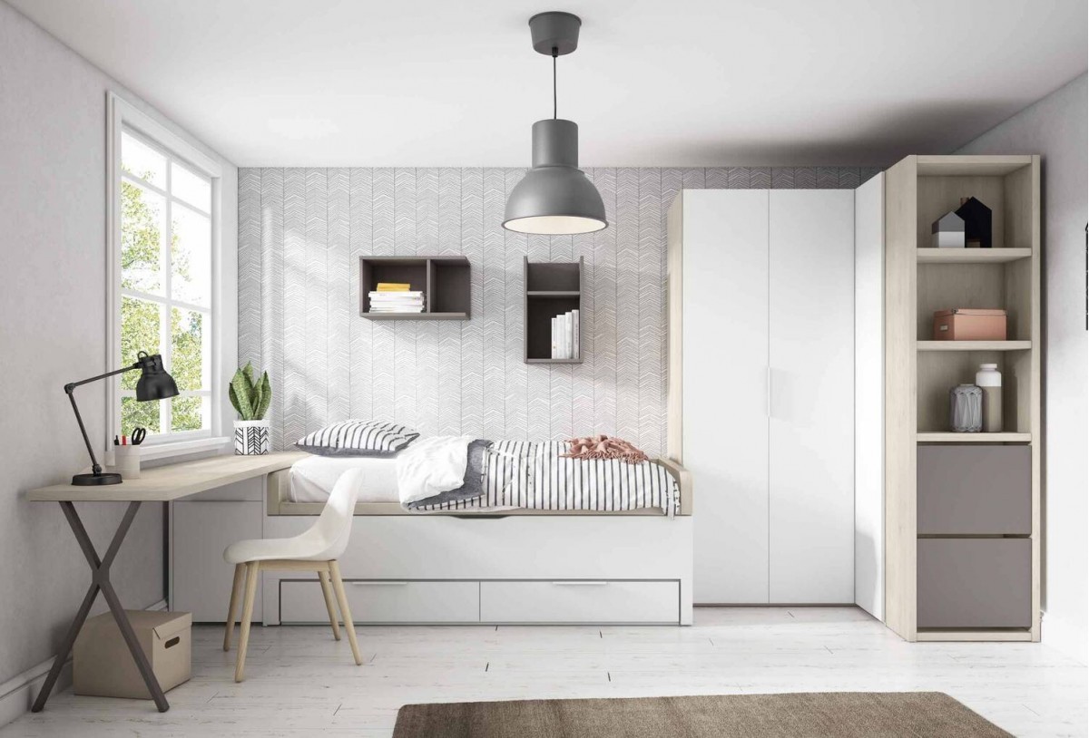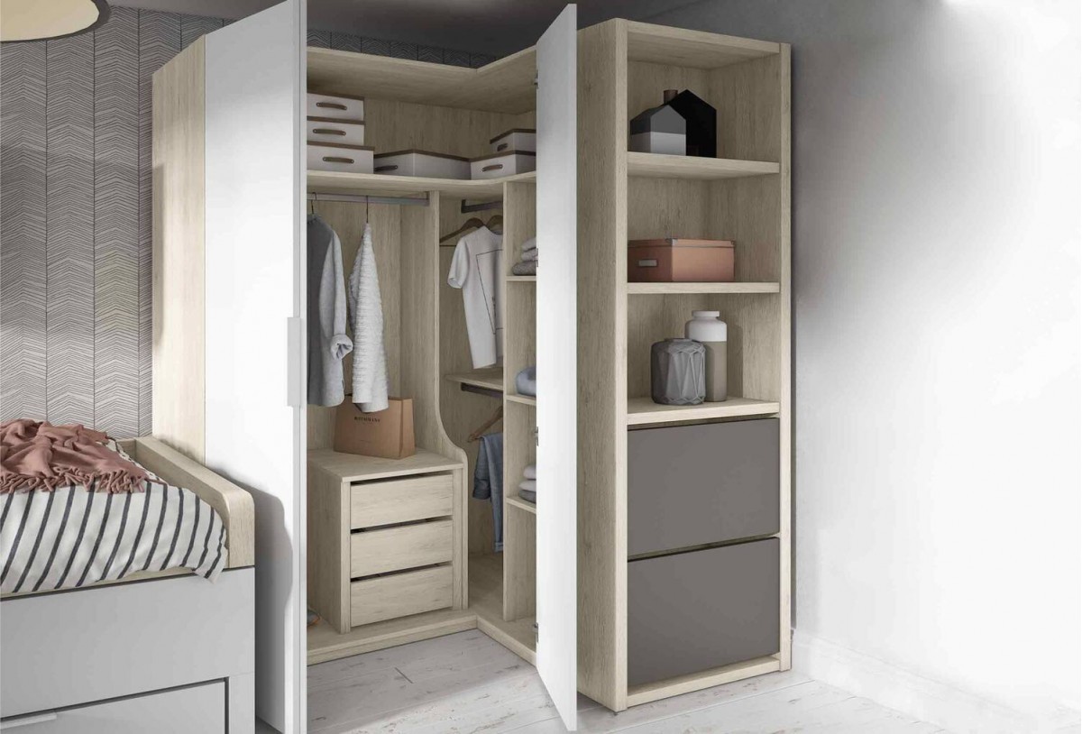 Dormitorio juvenil completo con rincón vestidor y bicama · Mod. WALINDA