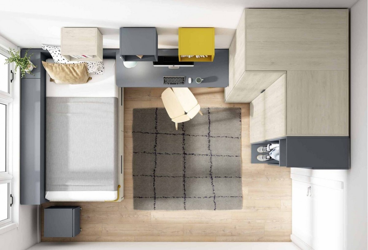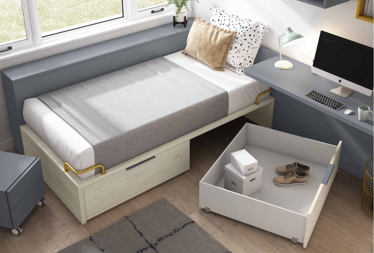 Cama nido con contenedores, escritorio amplio y respaldo arcón: orden y diseño para tu habitación juvenil