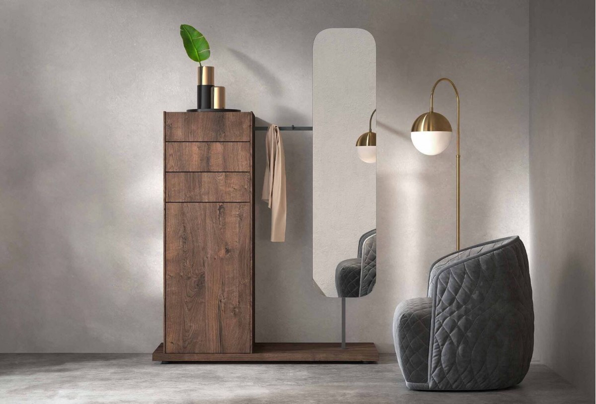 - Perchero derecho de 68 x 45.2 x 173 cm con espejo giratorio a módulo