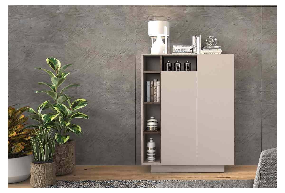 El aparador de 100 cm Tioga, un claro ejemplo de diseño sencillo y minimalista. Su discreta estructura y limpio diseño son una seña de identidad; podrás combinar el Tioga con cualquier color a disposición y hacerlo a medida para tu hogar. A pesar de sus pequeñas dimisiones el aparador Tioga completara a la perfección su función. Lleno de posibilidades será el mejor complemento para nuestra decoración. La parte superior nos permite jugar con nuestra imaginación y decorarla con infinidad de cosas, desde una lámpara hasta una planta pequeña. Dos puertas batientes serán las encargadas de proporcionar la mayor parte del espacio de almacenamiento. Tras las puertas `podremos tener desde juegos de copas como cubertería extra incluso nuestra colección de libros o películas. Los espacios diáfanos contiguos serán perfectos para tener siempre a mano libros consulta, revistas de actualidad o rematar la decoración con algún elemento decorativo. Un elegante zócalo elevara la composición.