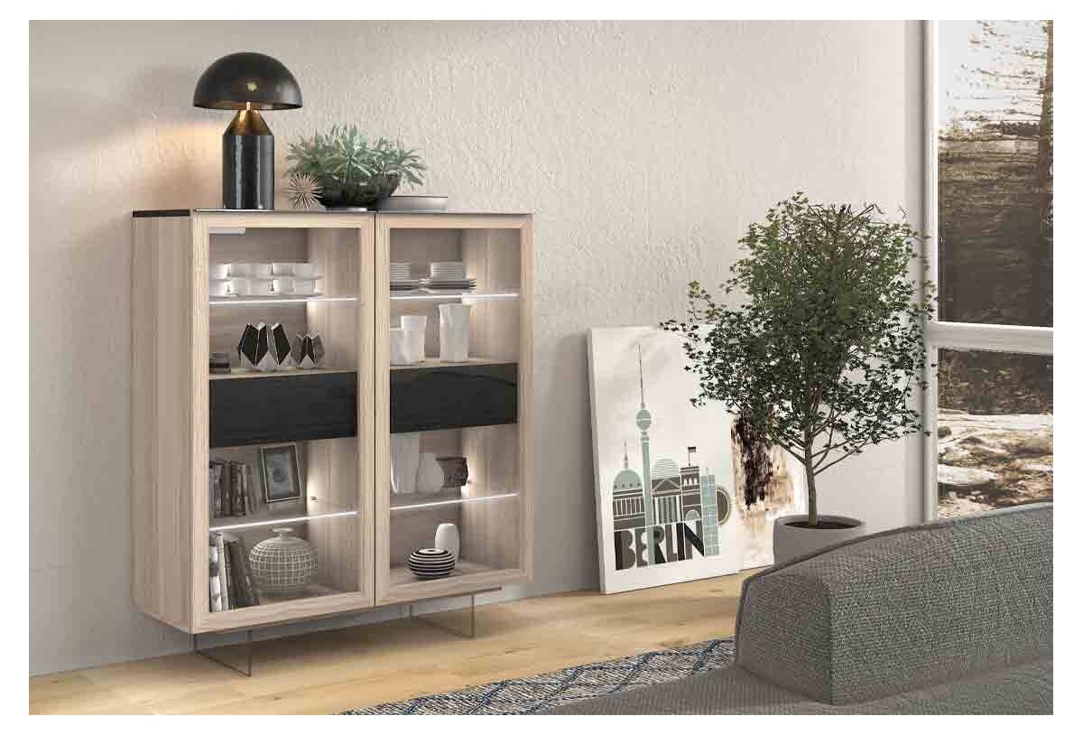Completa tu amplio salón con el aparador de 120 cm Dimmit, será el complemento ideal. Su estilo moderno será protagonista junto con la perfecta combinación de colores. Podrás combinarlo a tu gusto con la gran variedad de colores a disposición. Tras dos puertas batientes el aparador Dimmit nos aporta una amplia zona de almacenamiento. Diferentes estantes se encargan de separar el espacio en diferentes espacios, juegos de té o piezas de colección tendrán su espacio reservado dentro del aparador. Al tener cristal en la totalidad de las puertas, el mueble se convierte totalmente diáfano, podrás jugar con la decoración y a la vez lucir su interior. Dos prácticos cajones nos permitirán tener a buen recaudo en su interior desde piezas pequeñas como documentación. Un juego de discretas patas de cristal dará el toque extra de elegancia a nuestra decoración.