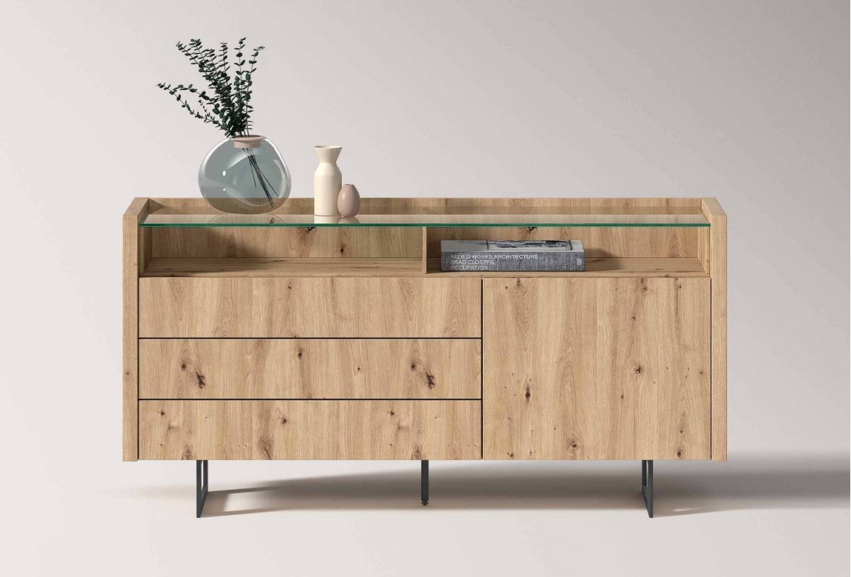 - Bajo de 150 x 45.2 x 48 cm con 3 cajones y 1 puerta batiente izquierda, sin apoyo