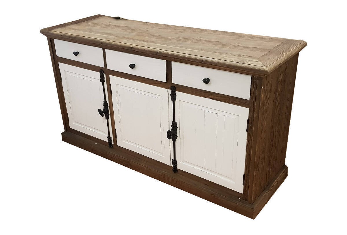El aparador de 160 cm con 3 puertas y 3 cajones combina su punto clásico con detalles modernos. Su combinación de colores para dar claridad y amplitud a la decoración. Destacan los sus finos acabados y sus finos herrajes. Tendremos un amplio espacio de almacenamiento, el espacio se divide tras varias puertas donde podremos guardar vajilla como mantelería para un día especial, y varios cajones donde tendremos siempre al alcance de la mano cualquier cosa que necesitemos durante el día a día.