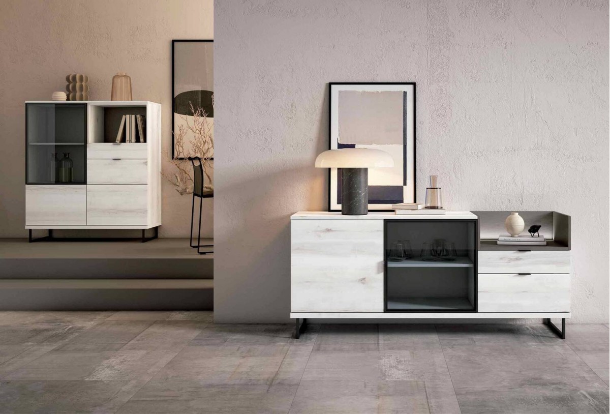 - Aparador alto de 109.9 x 45.2 x 130 cm (no incluido en el precio)