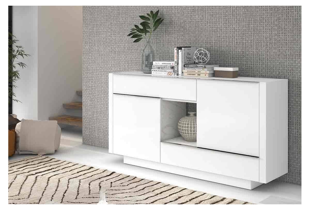 El aparador de 172 cm Graham será una pieza con la que siempre podremos contar, un diseño sencillo y moderno son la clave parar que este mueble sea ideal para el salón. Puedes combinarlo según te apetezca con las combinaciones de colores. El aparador Graham tiene un sinfín de posibilidades, el espacio de almacenamiento esta organizado tras varias puertas abatibles y batientes, colocadas alrededor del espacio en blanco. Detrás de cada puerta, juegos de copas o jarrones de porcelana tendrán el lugar ideal. Tanto en la puerta batiente baja como en la abatible podrás organizar platos adicionales para alguna visita. En las dos puertas superiores organizaremos mantelería o juegos de copas de cristal. Un discreto zócalo inferior aporta un toque extra de elegancia a la composición.