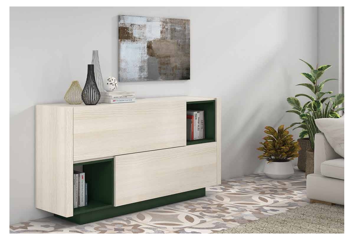 El aparador de 172 cm Lowndes aportara un toque moderno a nuestro salón, un diseño sencillo de líneas rectas combinado con la variedad de colores harán del Lowndes un complemento ideal. El apartador cuenta con una amplia superficie, podremos completar la decoración con algún jarrón o algún recuerdo de algún viaje. El mayor espacio de almacenamiento viene dado tras sus dos módulos bajos con puerta abatible. 120 cm que nos permitirán tener organizados tanto nuestra colección de películas como libros o cds preferidos. Como complemento el Lowndes cuanta con dos espacios diáfanos opuestos, los cuales serán ideales para tener siempre a mano libros de consulta o revistas de actualidad. Su discreto zócalo aportara un toque elegante a nuestro salón.