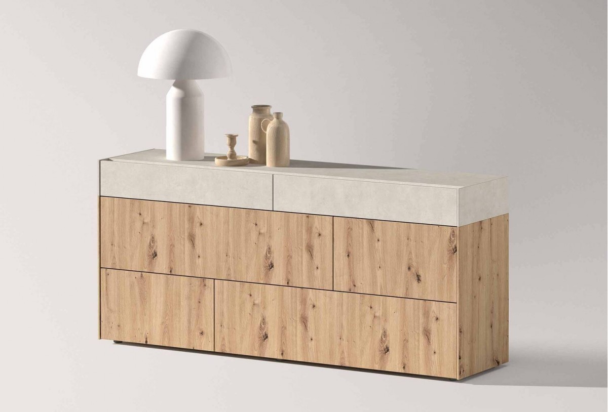 - Aparador izq. de 180 x 45.2 x 80 cm con 2 cajones superiores y 4 puertas, con niveladores