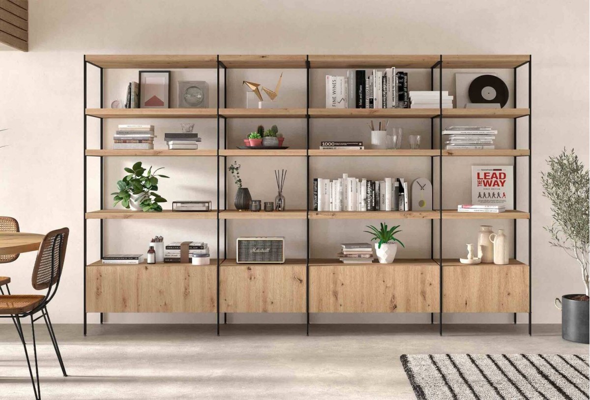 - Conjunto estantes y bajo (2 unidades) para librería metálica de 60 x 45.2 x 192 cm