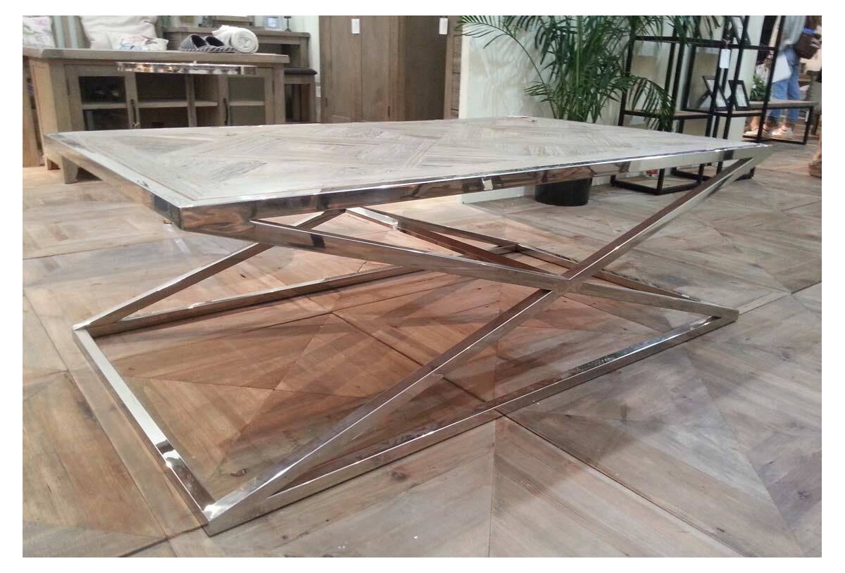 La mesa de centro Trekua destaca por su estructura en acero brillante, que la coloca dentro del estilo más lujoso con inspiración art decó. La original y base con forma de equis, da soporte a una interesante superficie de laminado de diferentes maderas naturales que le ofrece un aspecto único. El contraste de ambos materiales, de origen natural, han pasado por muy diferentes procesos para conseguir este atractivo resultado final. La luminosidad del acero y la calidez de la madera se complementan para ofrecer belleza y estilo contemporáneo en esta espectacular mesa de centro, que de seguro, atrapará las miradas de todos.