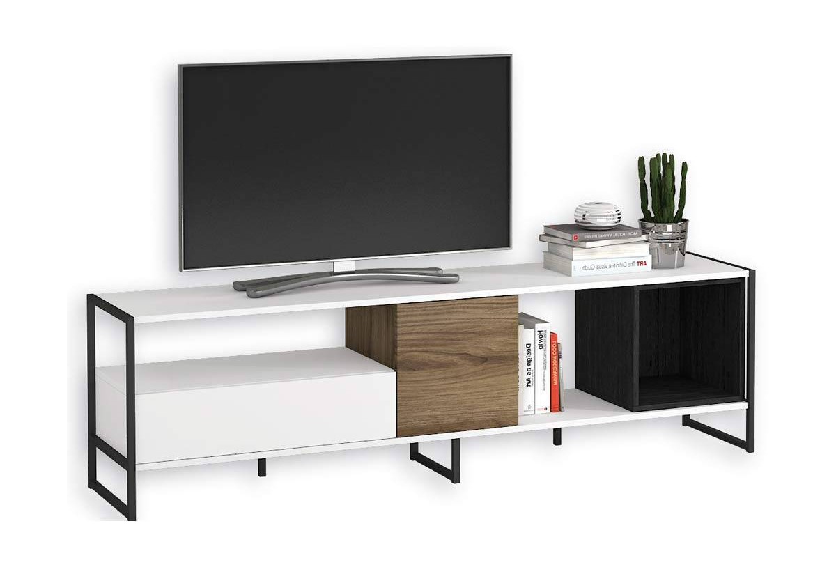 El mueble de tv de 204 cm Marion aportara a la decoración de tu hogar un nuevo aire, su diseño de líneas limpias y acabado minimalista. La estructura de metal irradiara un encanto especial en combinación con los colores, además están disponibles mas colores para combinar el mueble a medida. Su amplia superficie nos permitirá disfrutar de nuestra smart tv plácidamente, incluso tendremos espacio para tener alguna revista a mano, o decorar con alguna planta pequeña. El espacio de almacenamiento viene dado por un amplio cajón y dos módulos pequeños, unos de ellos con puerta. Sobre el modulo con cajón tendremos un espacio ideal para colocar nuestra consola o reproductor Blue-ray, mientras en el cajón podremos guardar las películas favoritas de los pequeños de la casa. Podremos tener organizados en el modulo diáfano nuestra colección de comics, mientras que tras la puerta batiente tener guardados nuestro juego de copas de valor. Tras los dos módulos tendremos un espacio ideal para tener libros de consulta o revistas de actualidad.
