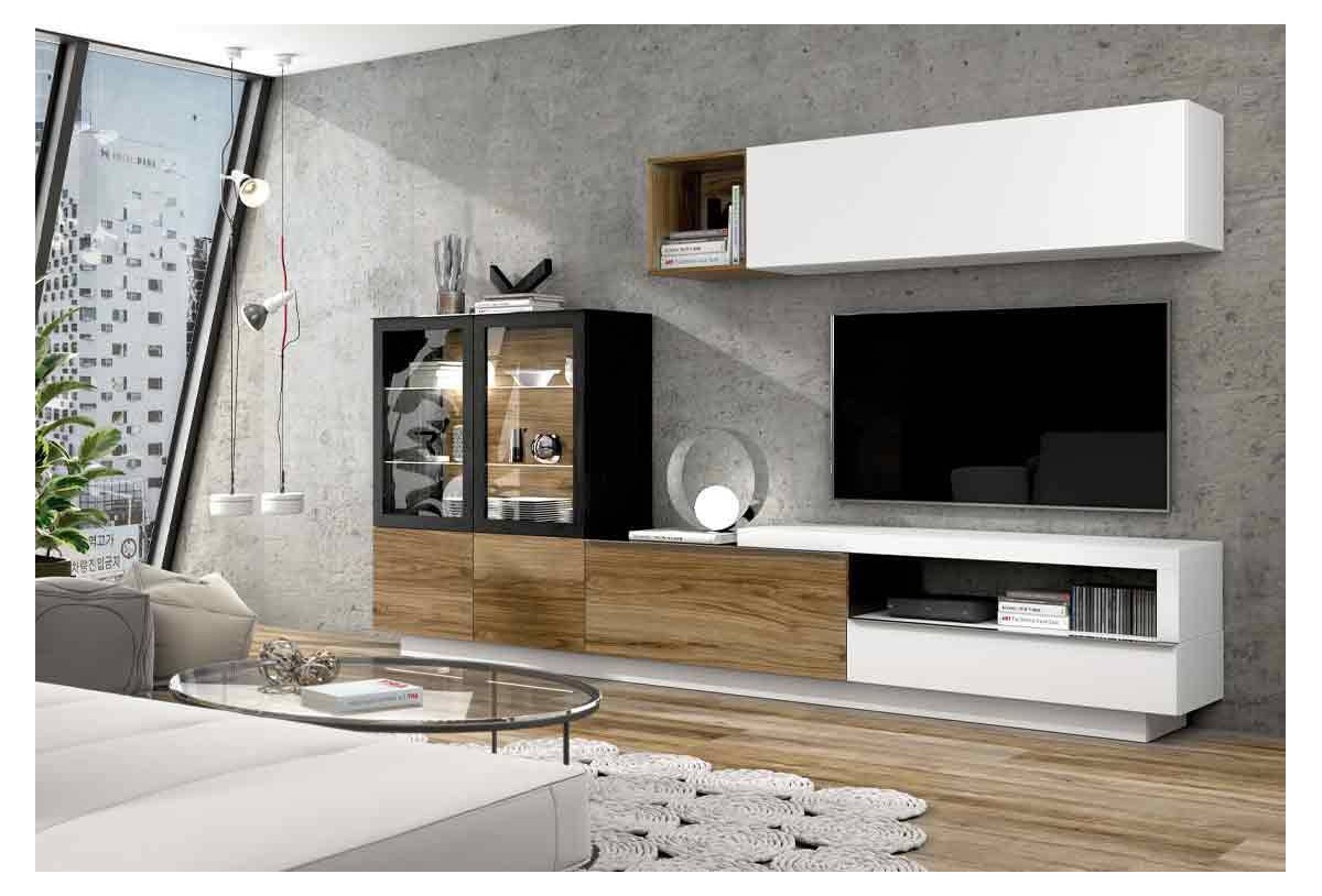 El mueble de salón de 300 cm Greene, un conjunto moderno que destaca por sus líneas rectas y toque sencillo. Complementara tu salón a la perfección, la gama de colores a disposición harán conjunto a tu medida. Podremos disfrutar de nuestro televisor en la zona central, tendremos espacio suficiente para colocar nuestra smart tv y ademas completar el frente con algún jarrón pequeño o planta pequeña. Bajo el, un modulo con puerta abatible donde tendremos nuestros juegos de mesa favoritos para poder disfrutarlos en familia. Un amplio cajón sera ideal para los elementos electrónicos como reproductor de Blue-ray, su zona diáfana con cristal favorecerá el funcionamiento. La mayor parte del espacio de almacenamiento viene dada por el modulo lateral, este cuenta con dos puertas bajas batientes y dos puertas altas con cristal batientes. En la parte baja podremos aprobechar el espacio para organizar documentación mientras que en la parte alta nuestras piezas de valor como porcelana o juegos de te serán protagonistas. En la parte alta contamos con un amplio modulo con puerta elevable y un espacio diafano. Distribuir el espacio de la mejor manera para organizar libros, podremos dejar a la vista los libros mas usados de consulta día a día.