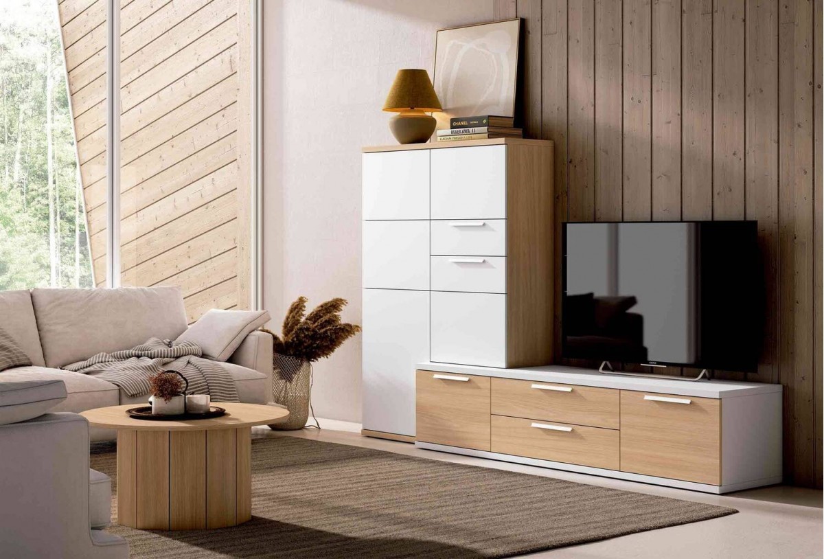 - Bajo de 192.1 x 45.2 x 43.4 cm con 2 cajones y 2 puertas