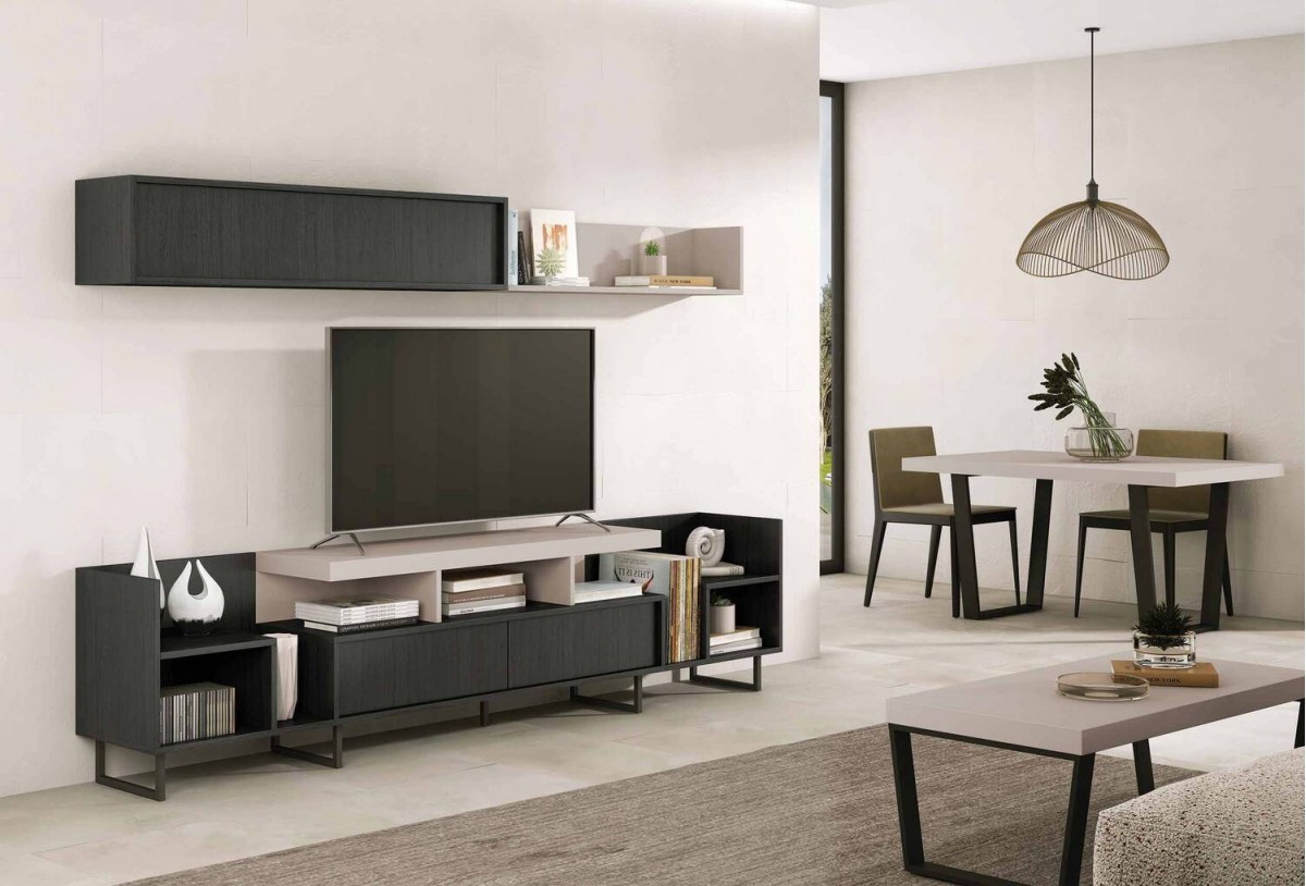 - Bajo de 138 x 42 x 48 cm con 2 cajones y suplemento tv, con pata metal 14 cm de alto