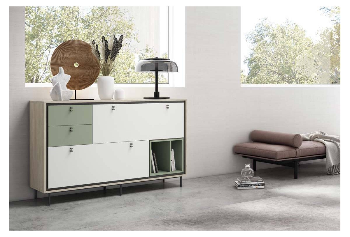 - Aparador de 150 x 40 x 82,6 cm con 2 cajones, 2 puertas lisas y 1 hueco