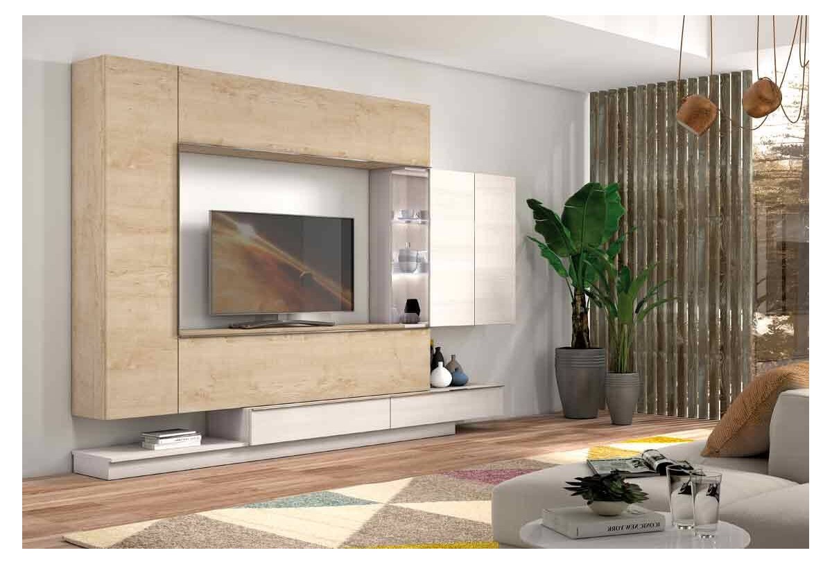 El mueble de salón de 300 cm Shelby es un complemento ideal para nuestro amplio salón, el mueble de salón crea un ambiente agradable. Un estilo muy minimalista, la combinación de líneas restas con su firme estructura lo convierten en un conjunto ideal. Combínalo a tu gusto con la variedad de colores a disposición. Nuestro televisor tendrá su lugar ideal en la zona central, junto a él un modulo alto con dos puertas batientes de madera y cristal. El espacio se divide en diferentes estantes, los recuerdos o juegos de te estarán resguardados del polvo pero podremos lucirlos gracias a su zona diáfana tras el cristal. La firme estructura en torno a nuestro tv la confieren diferentes zonas de almacenamiento. En la zona superior tendremos espacio suficiente para guardar nuestra colección de películas. En la zona inferíor tendremos un lugar ideal para platos o copas, mientas que en el lateral tendremos espacio para todo tipo de cosas, jarrones o porcelana incluso una pequeña colección de libros. Bajo todo ello, dos discretos cajones nos permitirán tener algo más de espacio, juegos de mesa o mantelería estarán siempre recogidos. Un amplio zócalo sostiene y levanta del suelo unos centímetros todo el mueble.