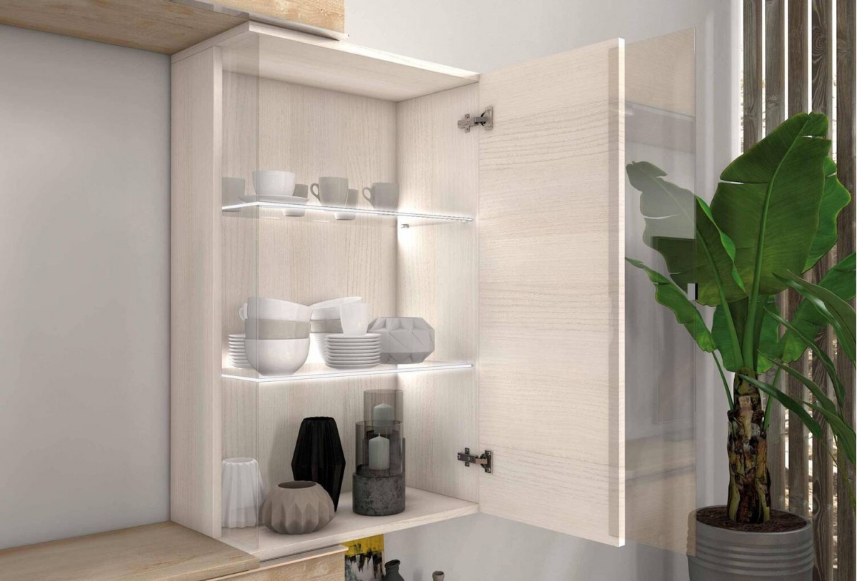 - Alto de 100 x 35 x 100 cm con 2 puertas y costado cristal madera batiente