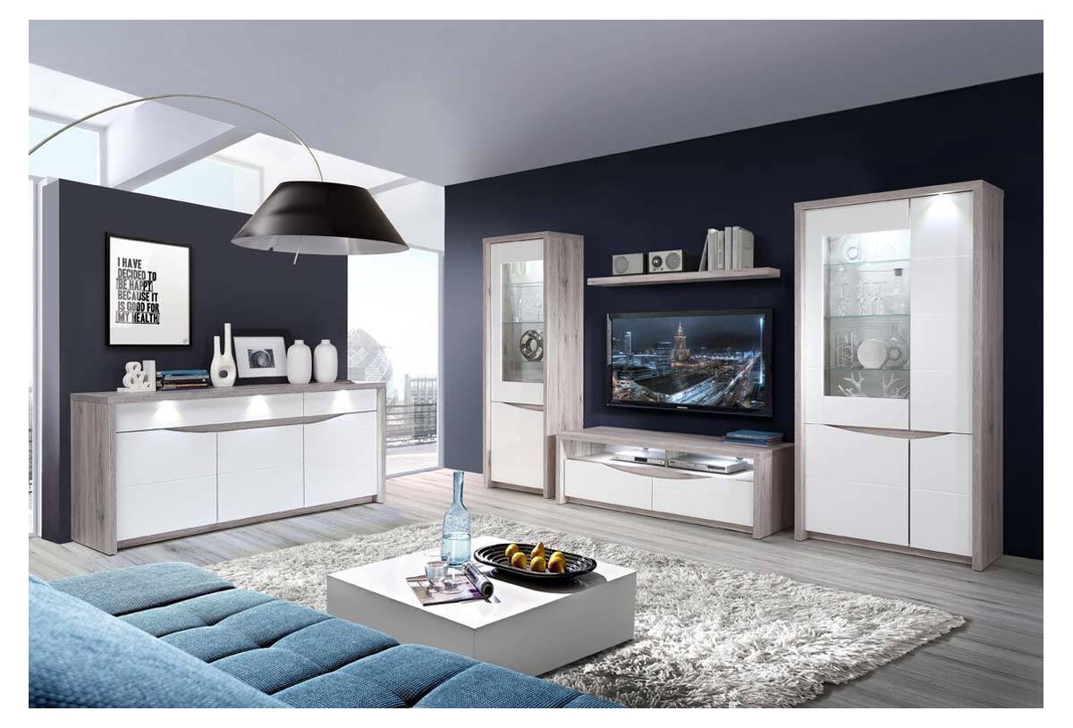 Completa tu salón con el mueble de salón McAllen. Se trata de un conjunto moderno que trasmite claridad y contraste a nuestro salón, podrás disfrutar de él durante muchos años gracias a su robusta estructura y acabados de calidad. Un amplio mueble de tv en la parte central nos permitirá lucir nuestro televisor, sus 147 cm de superficie nos permitirá colocar algún ornamento extra. Cuenta con varios cajones y dos espacios diáfanos. En una parte lateral contamos con una vitrina con una puerta diáfana. En diferentes estantes tendremos espacio para colocar nuestras figuras de valor o piezas de porcelana; la parte inferior quedara fuera del alcance de las miradas indiscretas. De igual manera en parte opuesta una amplia vitrina con dos puertas aportara un amplio espacio de almacenamiento; tras sus múltiples puertas podremos tener en diferentes estantes figuras de colección de tal forma que mediante la zona diáfana la parte interior también será participe de la decoración exterior. La parte inferior la podremos destinas a guardar documentación en pequeños archivadores.
