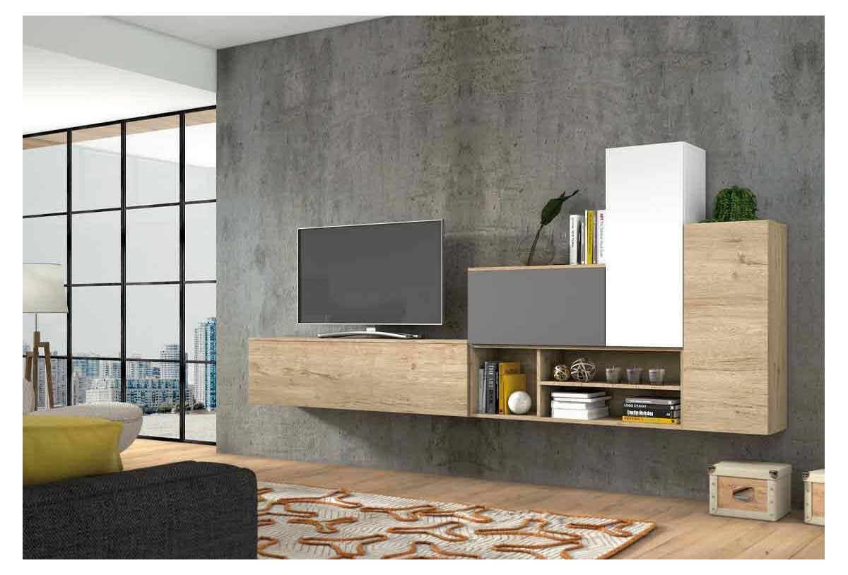 El mueble de salón de 320 cm Carroll completara tu amplio salón con su moderno diseño, la posibilidad de combinarlo con diferentes colores te permitirá disfrutar de un mueble de salón que no desentonara con el resto de tu hogar. Podremos disfrutar de nuestro televisor dejando descansar sobre un amplio modulo alto de 160 cm, este consta de una puerta abatible la cual resguardara del polvo nuestra colección de películas. Estarán siempre al alcance tanto de los mayores como de los pequeños de la casa. Junto a este, varios módulos con puertas tanto batientes como abatibles, un amplio espacio de almacenamiento ideal para nuestra colección de comics o poder tener organizado menaje extra. Sobre ellos podremos aprovechar el espacio para complementarlo con alguna planta pequeña o alguna revista. Un modulo diáfano de 120 cm permitirá dejando el espacio organizado, tener siempre a mano los objeto del día a día como libros o complementar la decoración con algún elemento decorativo.