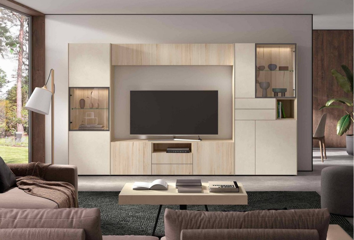 - Columna de 90 x 45.2 x 194 cm con 4 puertas batientes y 2 cajones izquierdo (en este caso con incremento por puerta de cristal), con niveladores