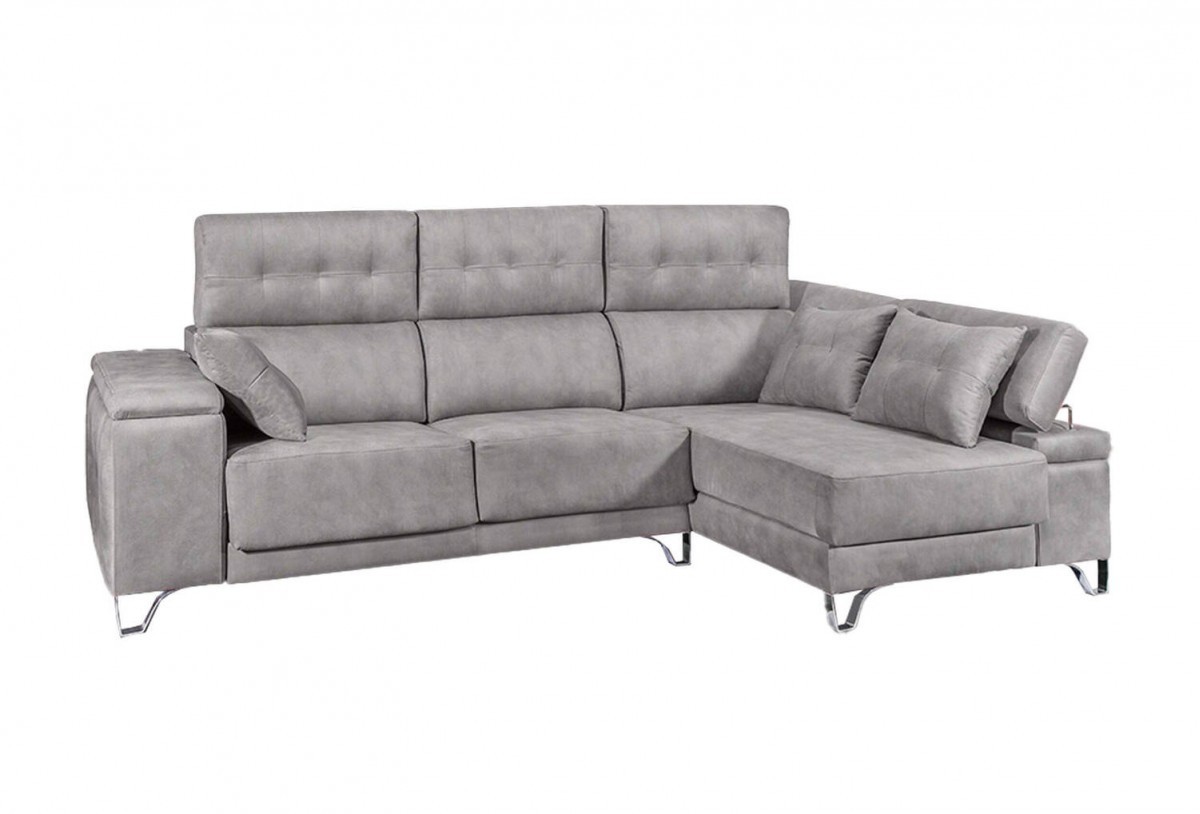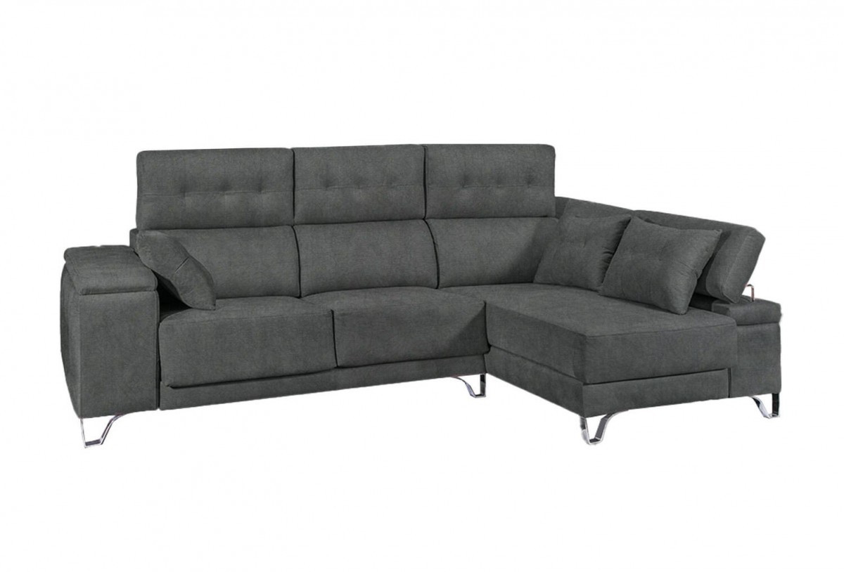 El sofá chaise longue aporta una relajante sensación en la sentada mediante su relleno de muelles ensacados y goma espuma de alta densidad junto con fibra siliconada. Cuenta con asientos deslizantes, podrás ampliar la zona para sentarte gracias al sistema metálico con ruedas deslizantes. Disfruta de un confortable descanso después del día dura junto con este práctico y elegante sofá.